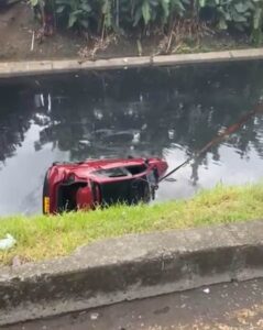 En la noche del sábado 31 de enero, se registró un aparatoso accidente de tránsito en el sector conocido como Cuatro Esquinas, en el oriente de Cali. El hecho generó alarma entre los habitantes de la zona, luego de que un vehículo terminara dentro de un canal de aguas residuales.