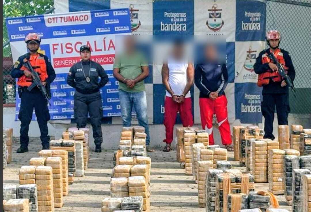 La Fiscalía General de la Nación presentó ante un juez de control de garantías a tres hombres que habrían sido sorprendidos transportando más de dos toneladas de cocaína en una embarcación cerca de la costa del puerto de Tumaco, Nariño. Se trata de dos ciudadanos ecuatorianos y un colombiano, quienes fueron requeridos por lanchas de la Armada Nacional durante labores de control marítimo.