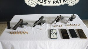 De acuerdo con las autoridades, el hecho se registró en horas recientes y la reacción inmediata de los uniformados permitió ubicar y detener a los presuntos responsables cuando intentaban huir del lugar, configurándose la captura en flagrancia. Durante el operativo, la Policía incautó tres armas de fuego y una arma traumática modificada, las cuales habrían sido utilizadas para cometer el crimen.