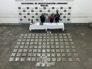 Los dos capturados fueron puestos a disposición de la Fiscalía General de la Nación por el delito de tráfico de estupefacientes y se encuentran a la espera de que un juez defina su situación judicial.