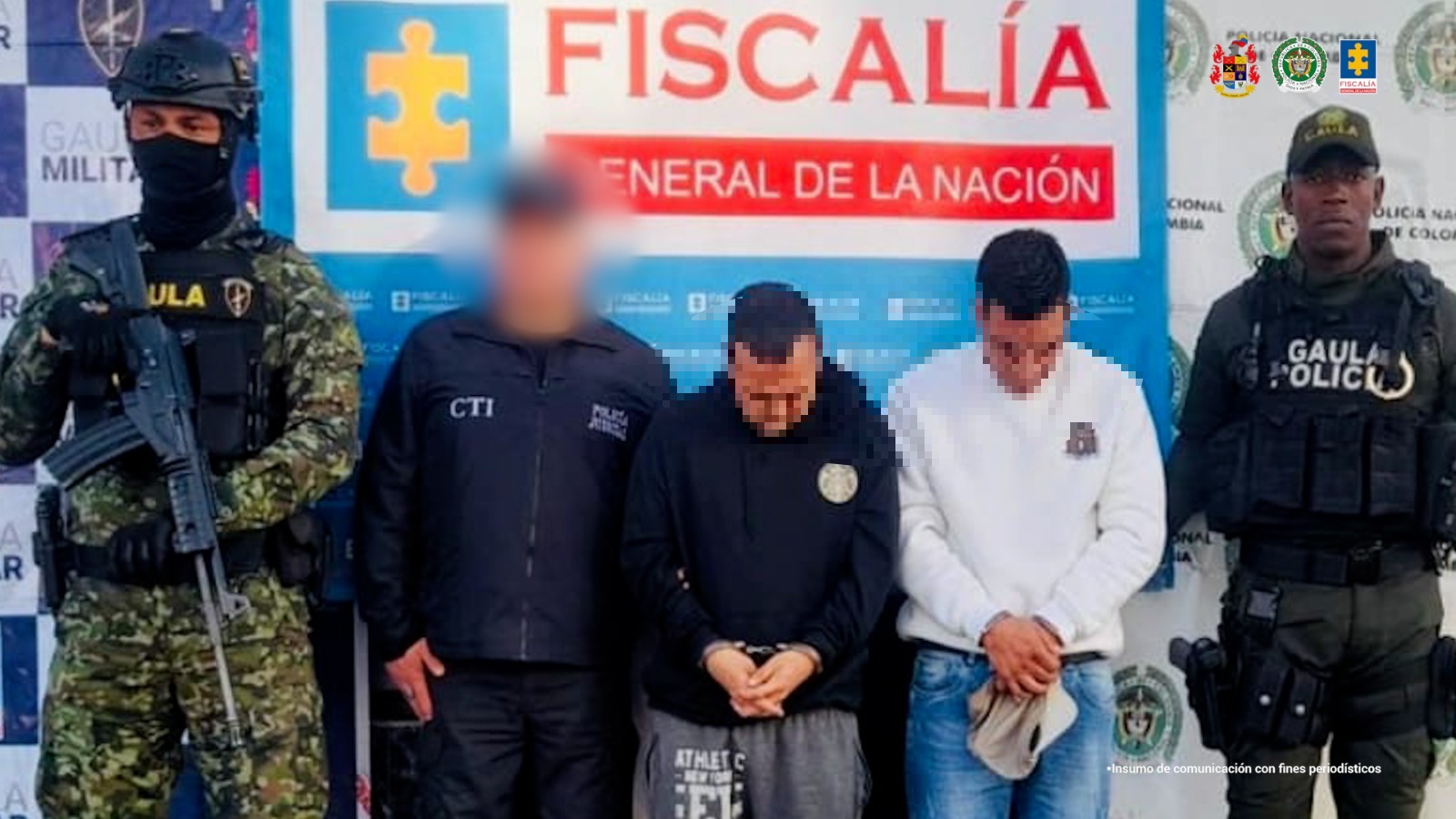 Las capturas fueron realizadas en Ipiales por el CTI, con apoyo del Gaula Militar y la Policía Nacional.