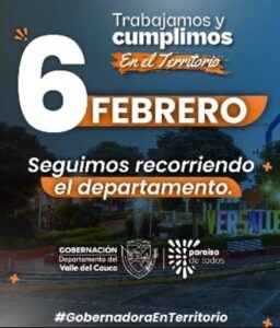 “Estaremos este 6 de febrero, bajo el liderazgo de la gobernadora Dilian Francisca Toro, en municipios como Trujillo, Versalles, Riofrío, Palmira y Roldanillo, trabajando y cumpliendo por los vallecaucanos”, afirmó Liza Rodríguez, secretaria General del Valle.