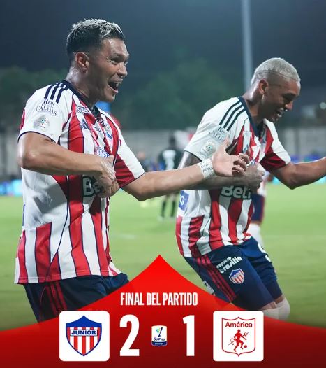 Junior de Barranquilla venció 2-1 al América de Cali en un partido cargado de polémicas arbitrales y se metió entre los ocho primeros de la Liga BetPlay. El encuentro se disputó en el estadio Romelio Martínez y tuvo como protagonistas a Luis Fernando Muriel y Teófilo Gutiérrez, autores de los goles del equipo dirigido por Alfredo Arias.