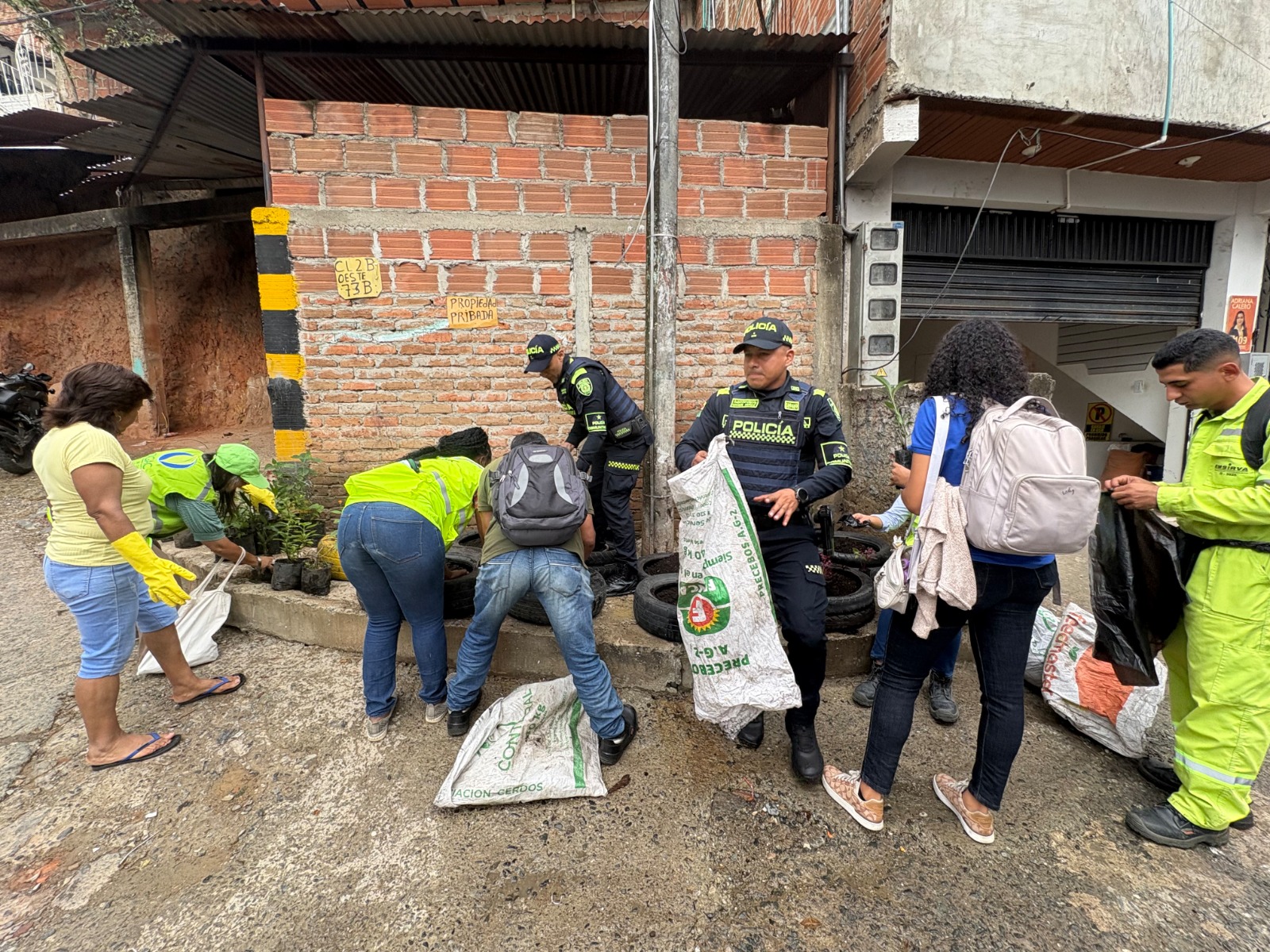Habitantes del barrio Los Chorros, en la comuna 18 de Cali, venían afrontando desde hace meses una problemática relacionada con el inadecuado manejo de residuos sólidos, situación que generaba afectaciones ambientales, problemas de convivencia y se había convertido en un foco de inseguridad para la comunidad. Ante esta realidad y el desespero de los residentes, se logró una articulación entre la Policía Metropolitana de Cali, distintas entidades públicas y privadas, y los propios habitantes del sector.