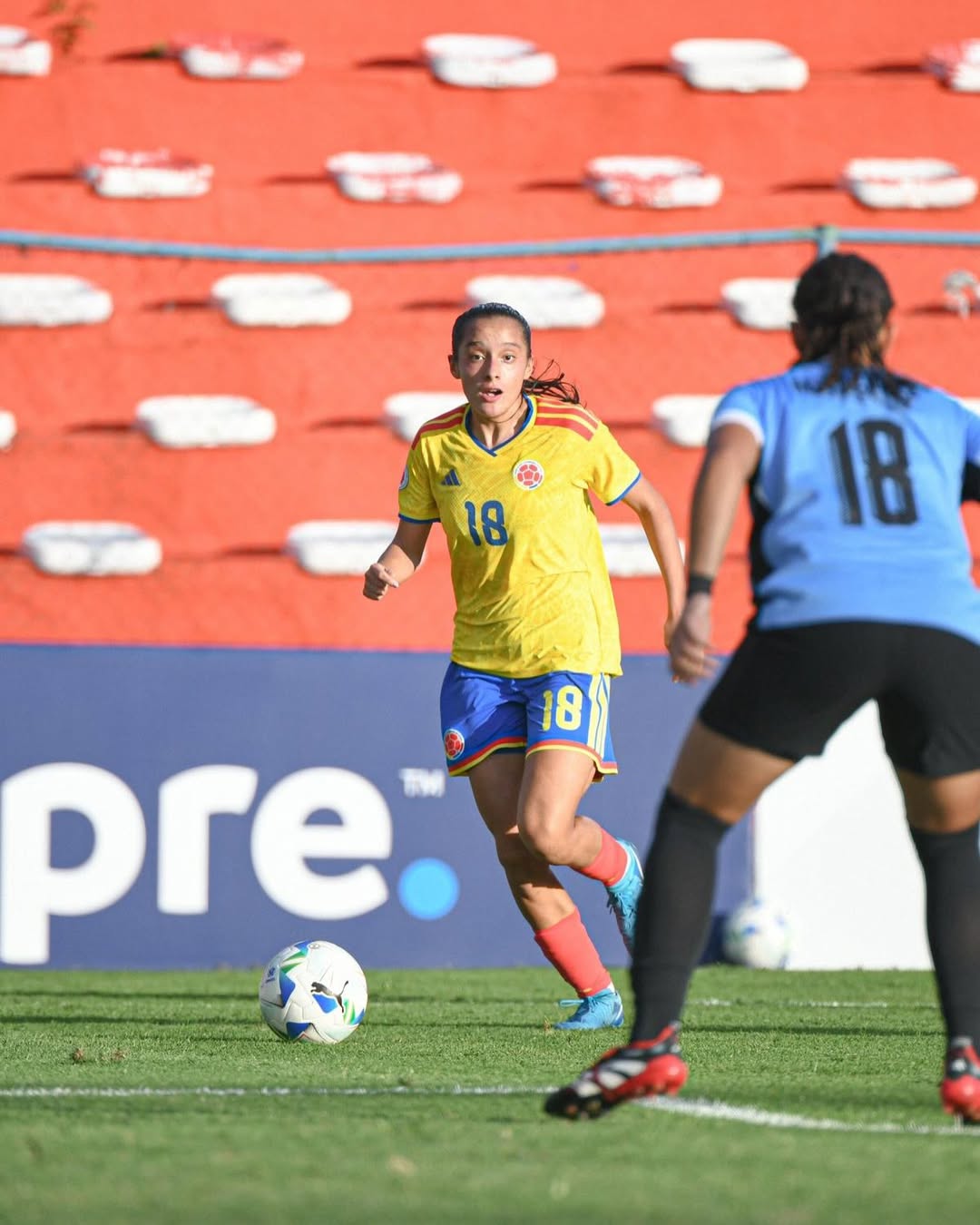 Desde el inicio del compromiso, las dirigidas por Carlos Paniagua mostraron una propuesta ofensiva clara, presionando alto y buscando el arco rival. Aunque el dominio colombiano fue evidente, el primer gol solo llegó en los minutos finales del primer tiempo, cuando Maithe López, figura del encuentro, se inventó una brillante jugada individual dentro del área para abrir el marcador.
