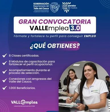 Las inscripciones estarán abiertas hasta el 3 de marzo y se realizan a través del portal oficial de VALLEmplea o del formulario habilitado por la Gobernación. Podrán postularse personas que hayan participado previamente en procesos de formación, sin importar la institución o el nivel de certificación alcanzado.